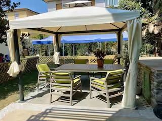 L’accogliente ingresso vi condurrà nel salotto con divano letto, la cucina completa di lavastoviglie ed attrezzata per cucinare ha una porta per accedere allo splendido giardino con patio arredato per i vostri pranzi e cene all’aperto.