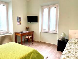La camera matrimoniale, la camera con letto ad una piazza e mezza ed letto singolo ed il comodo bagno con doccia.