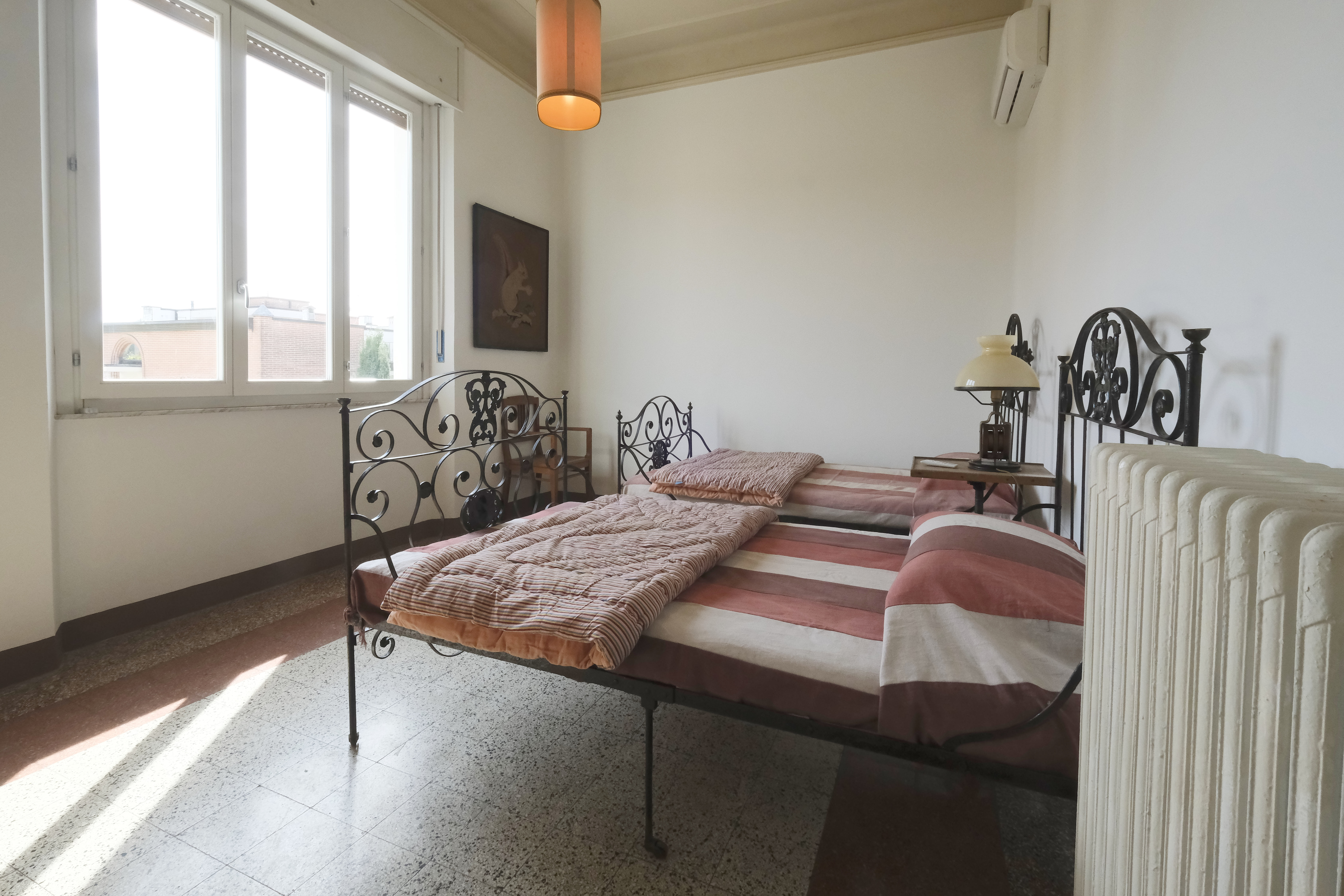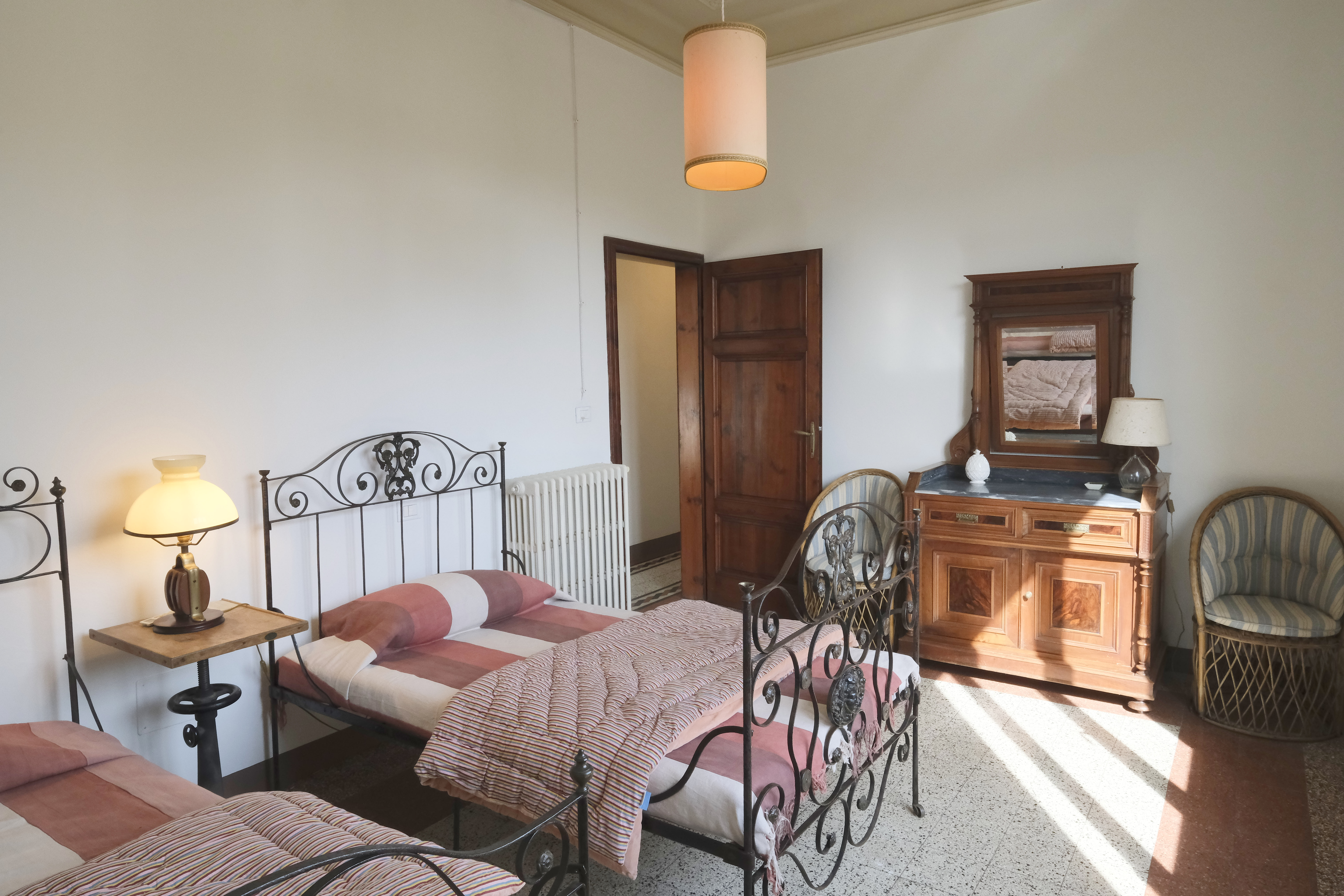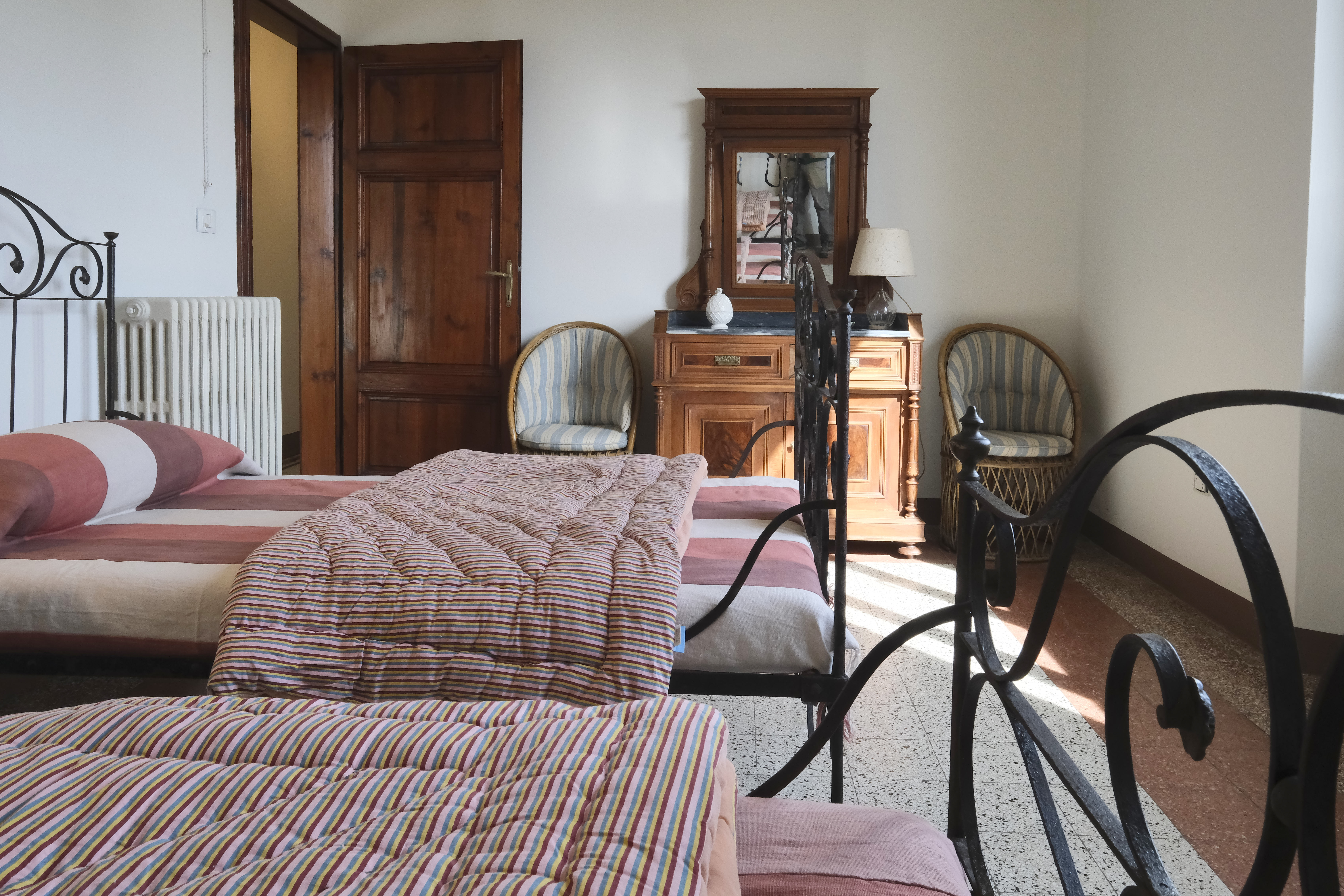 La comoda camera matrimoniale, la grande camera con due ampi letti singoli e la terza camera con un letto singolo, entrambi i bagni sono dotati di doccia e nel piccolo ripostiglio troverete la lavatrice.