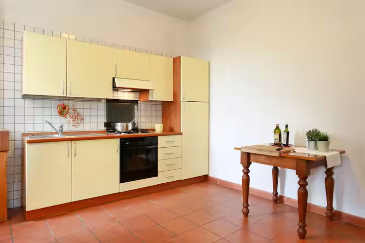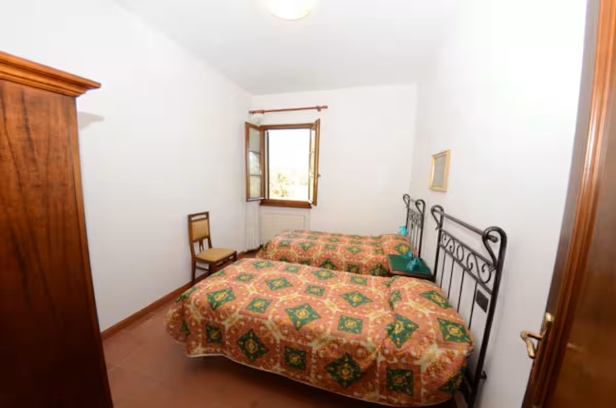 Appartamento piccolo al piano terra; ingresso in soggiorno con angolo cottura, camera matrimoniale, camera doppia (due letti singoli) e bagno con doccia.