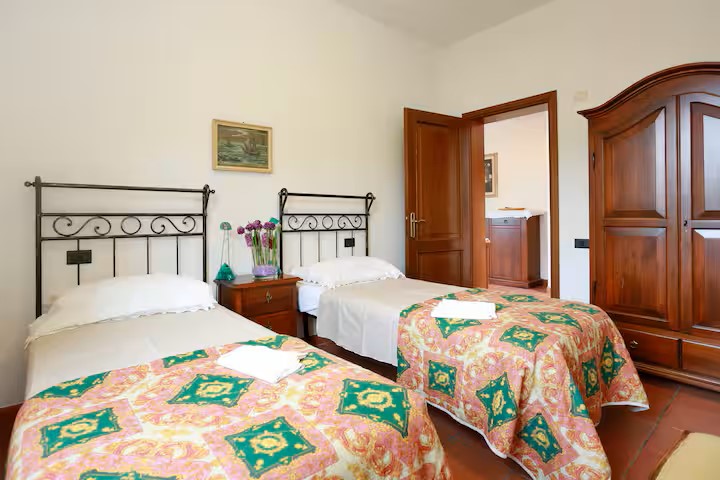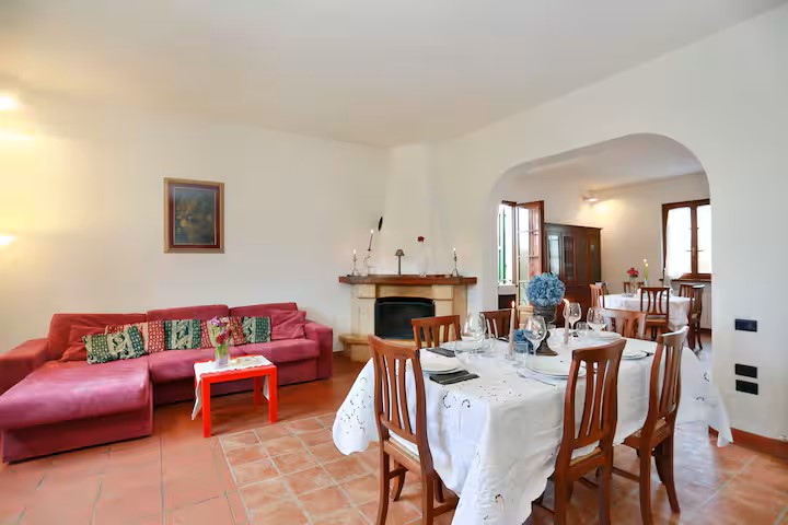 La villa è divisa in tre appartamenti che possono comodamente ospitare 16 persone.