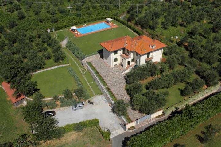 Casale Dante è una fantastica villa sulle colline Lucchesi con una vista panoramica e splendida piscina nel parco privato, vicina al centro storico di Lucca.