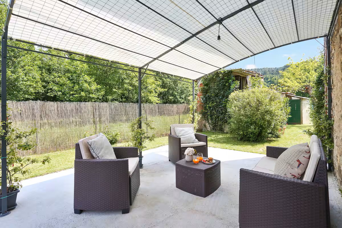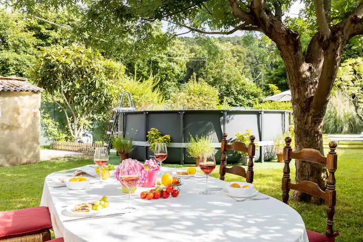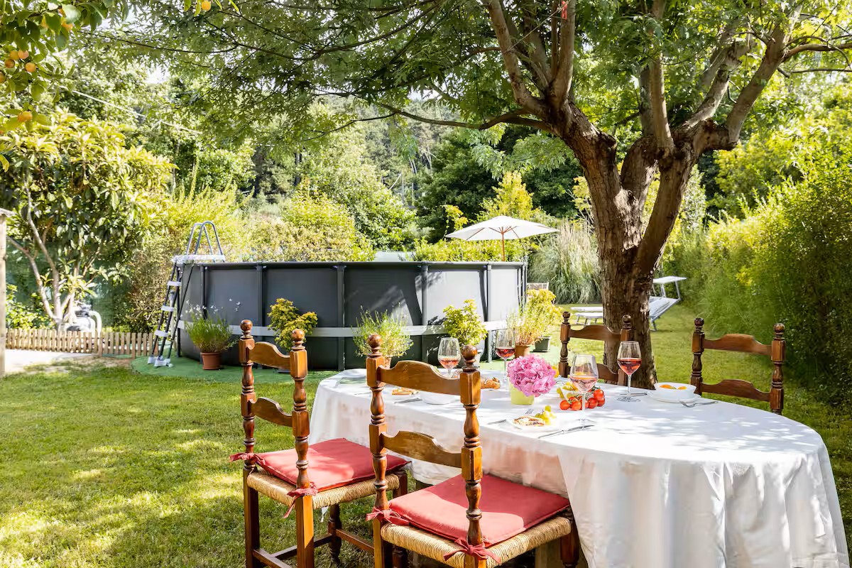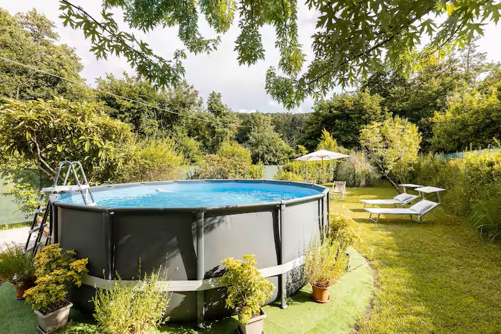 Il grande giardino è completamente attrezzato per l’estate con una piscina fuoriterra, tavolo per pranzi in compagnia e comode sdraio per leggere un libro e rilassarsi.