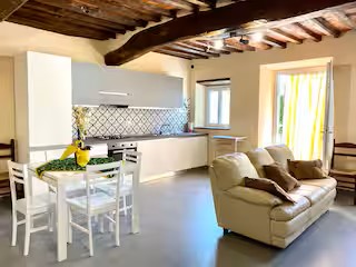 La casa di Paola e’ una porzione di rustico ristrutturato con cura situato in un piccolo borgo immerso nelle verdeggianti colline di Lucca a circa 15 km. dal centro storico e a circa 20 km. dal mare della Versilia.