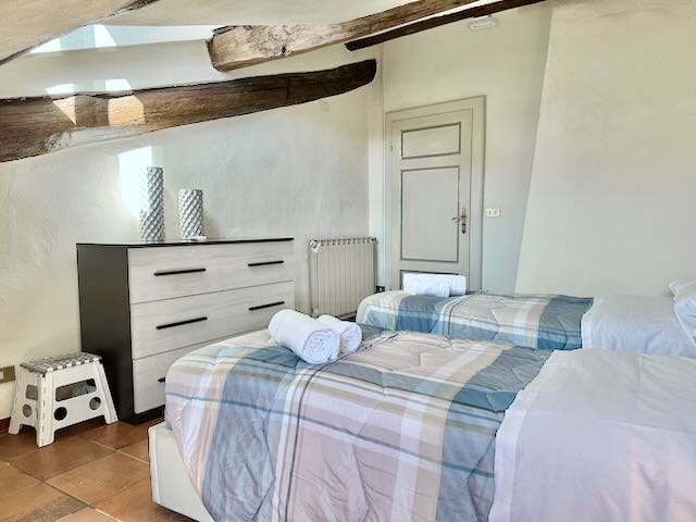 La camera matrimoniale, la camera doppia con poltrona letto ed il bagno con doccia.