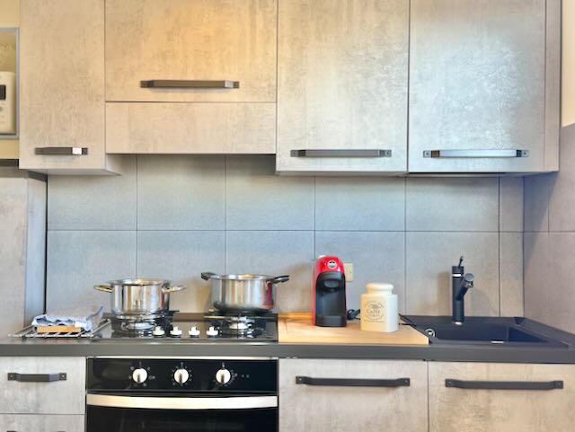 All’ingresso troverete la parte per lasciare soprabiti e valigie, salendo ancora l’accogliente salotto con Tv e divano letto, la cucina attrezzata con ripostiglio dove ci sono una lavatrice ed un piccolo freezer.