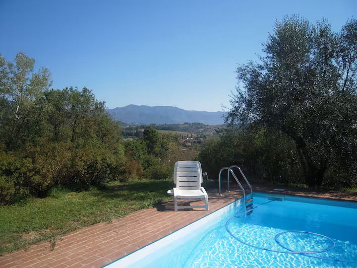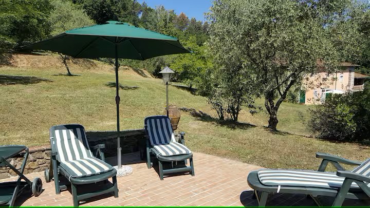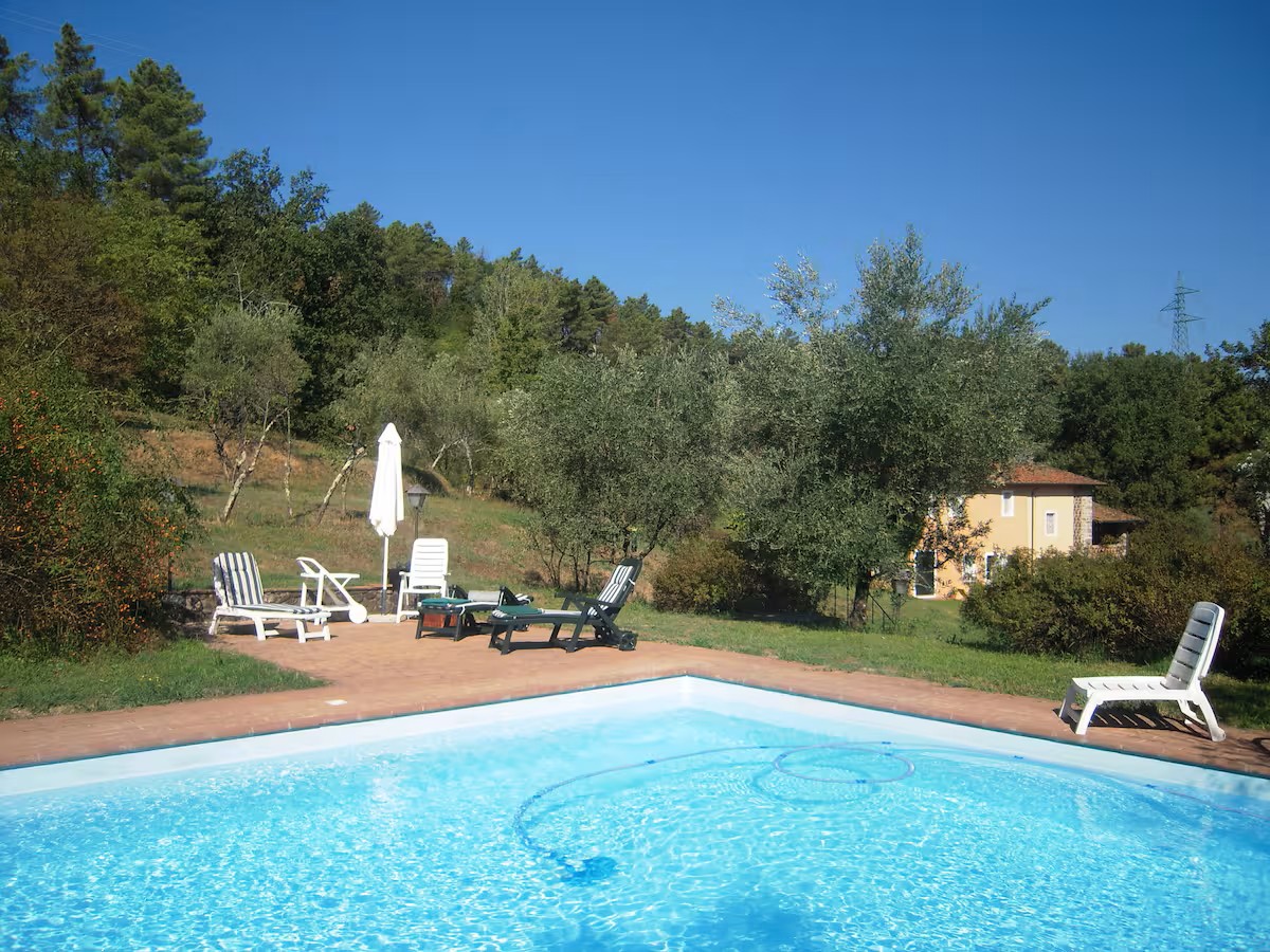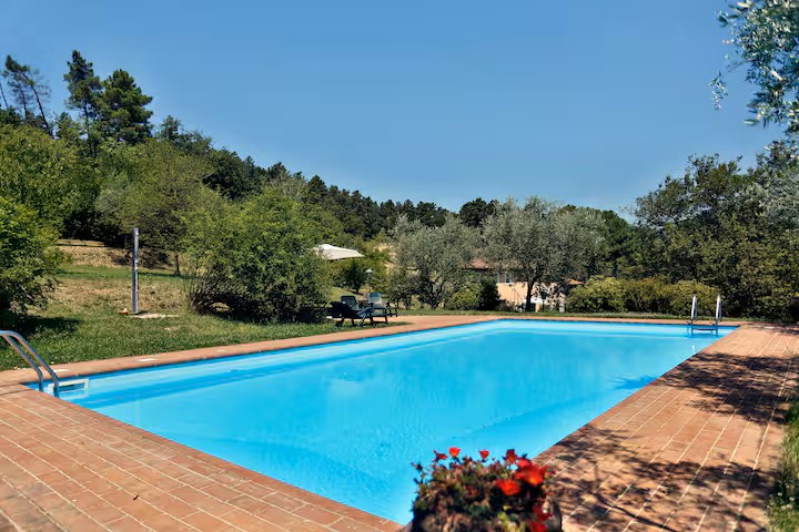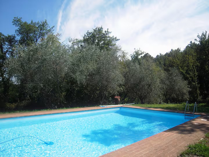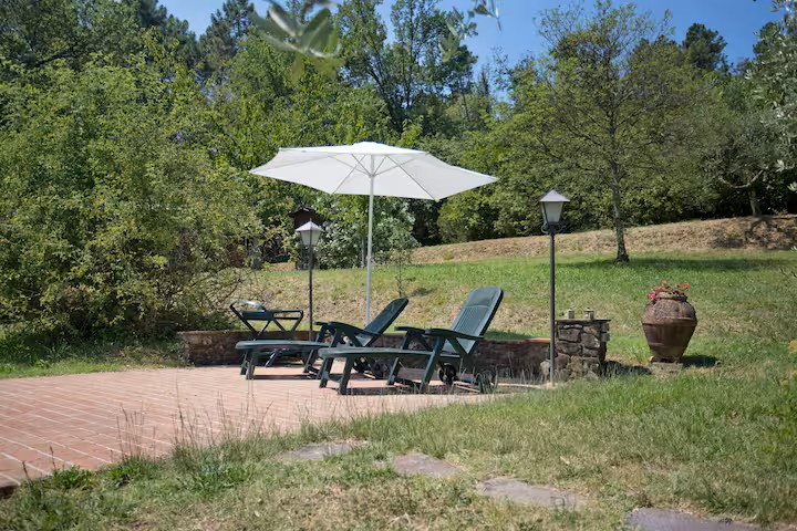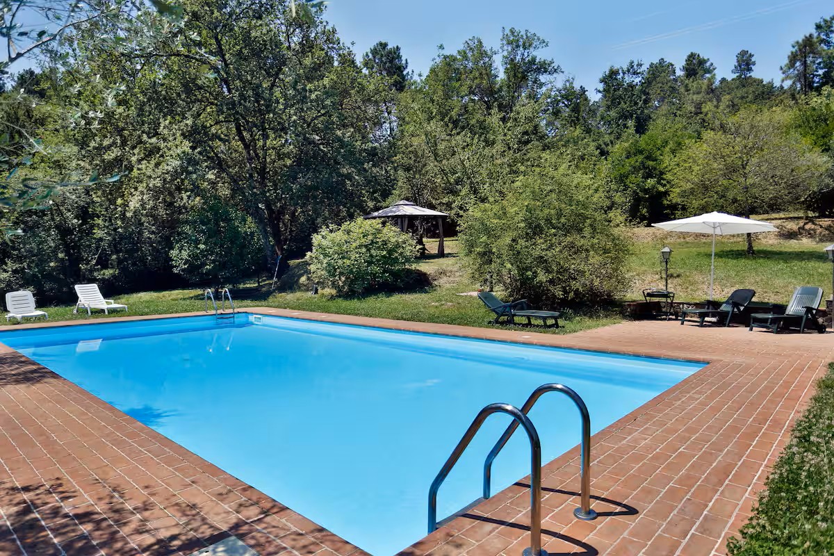 Incastonata nel lussureggiante giardino c'è la piscina arredata con tutto quello che serve per godervi le vostre giornate all'aperto.