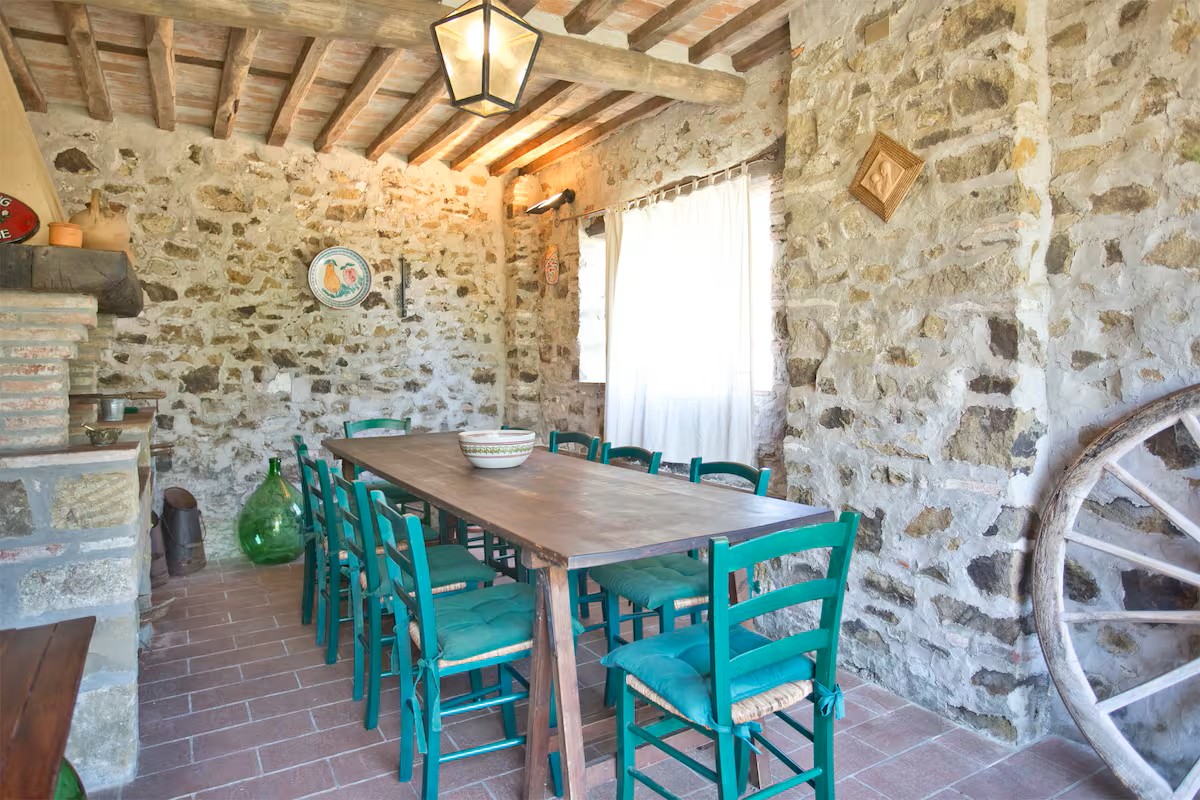 Subito fuori dalla cucina troverete il patio arredato per cene o pranzi all'aperto e con il BBQ a legna.