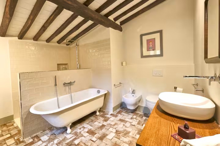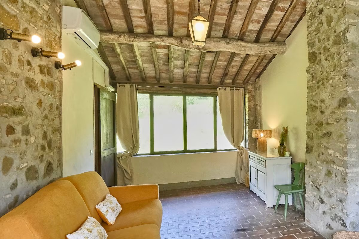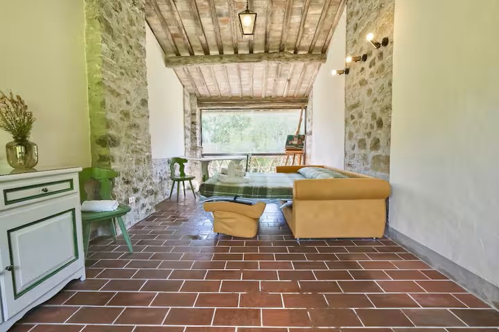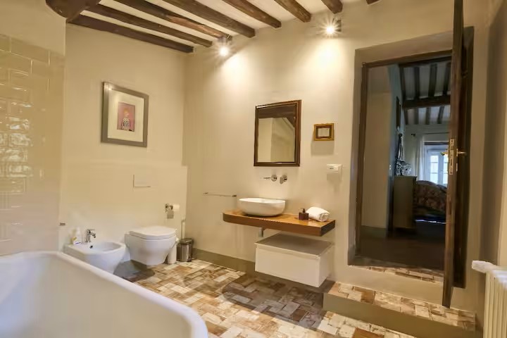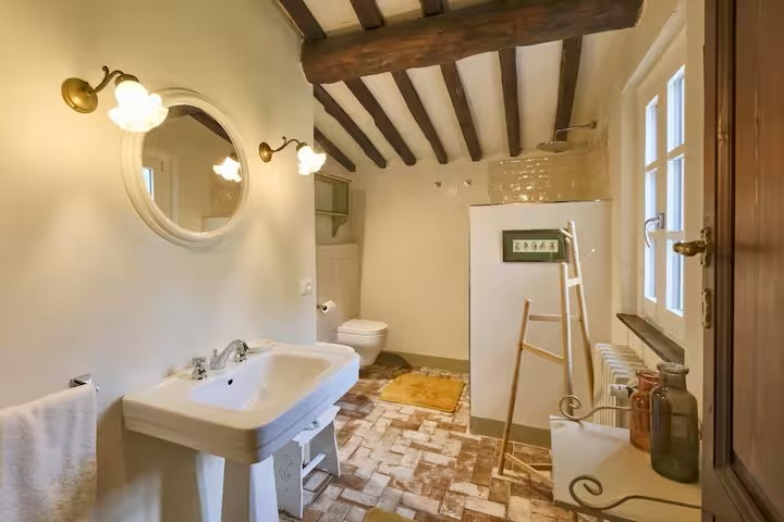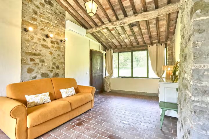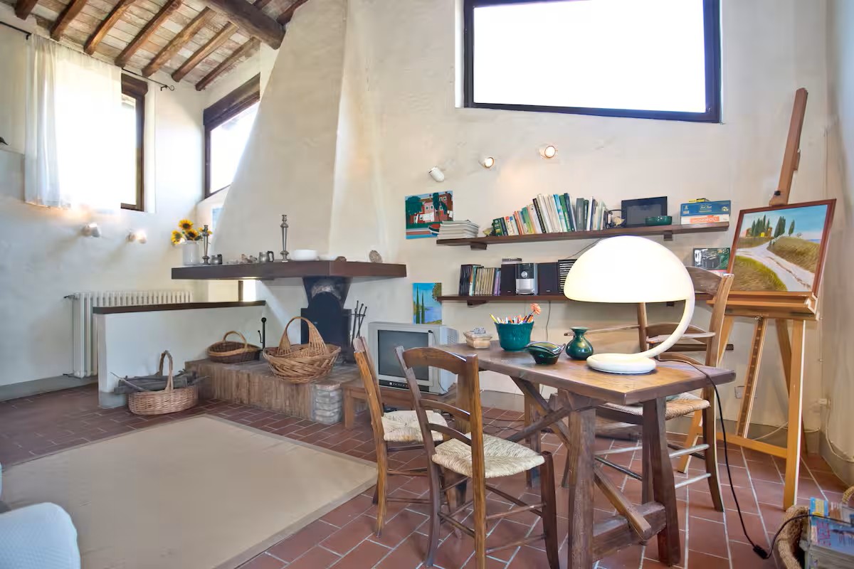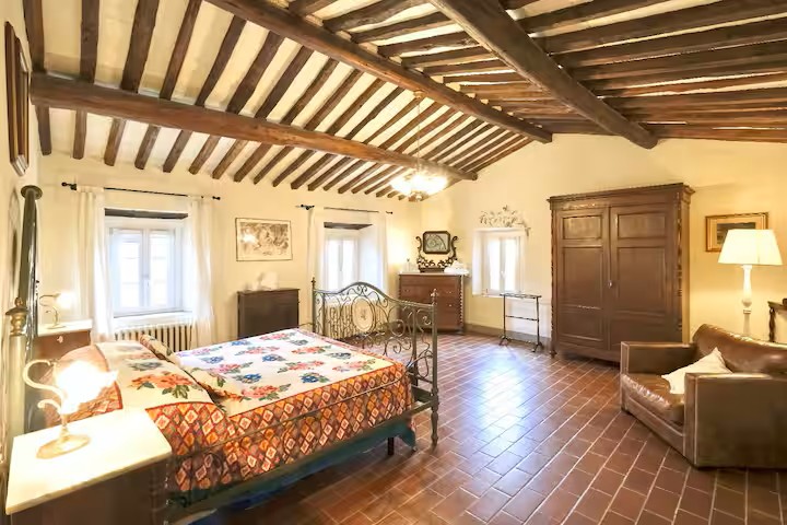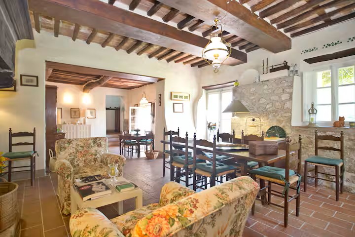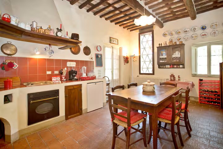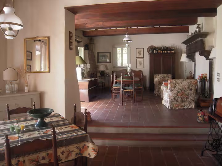 Casale Beatrice è un bellissimo casale nella campagna toscana. La casa si sviluppa su due livelli, al piano terra si accede da un ingresso che porta direttamente alla vasta sala suddivisa in zona relax con divano e Tv e zona pranzo, pochi gradini vi condurranno invece all' ampia cucina completamente attrezzata.