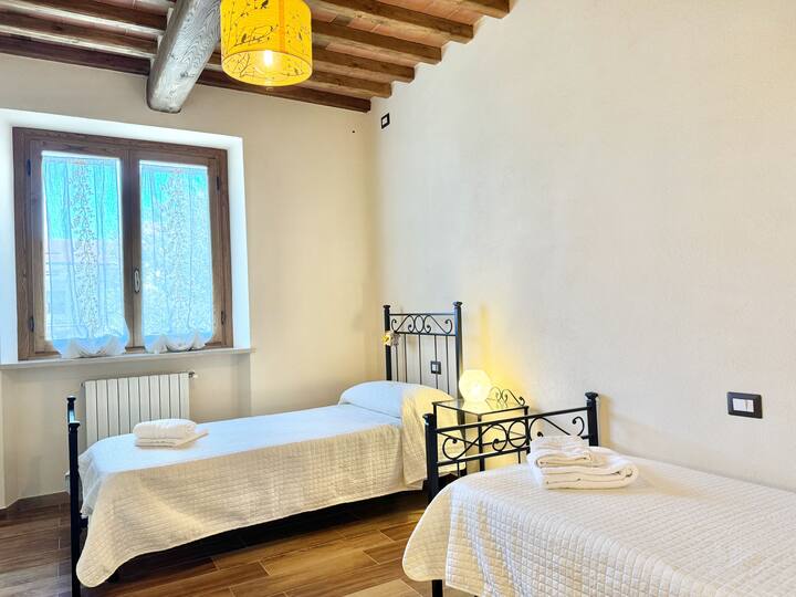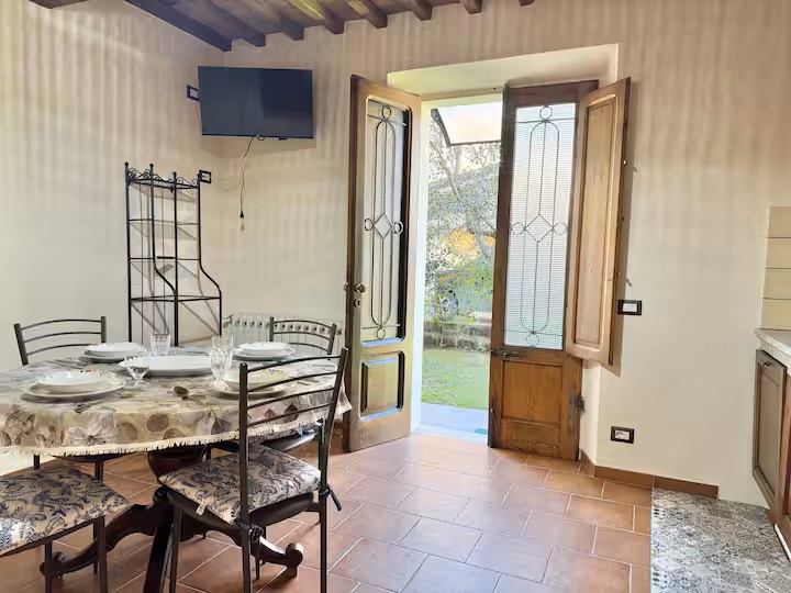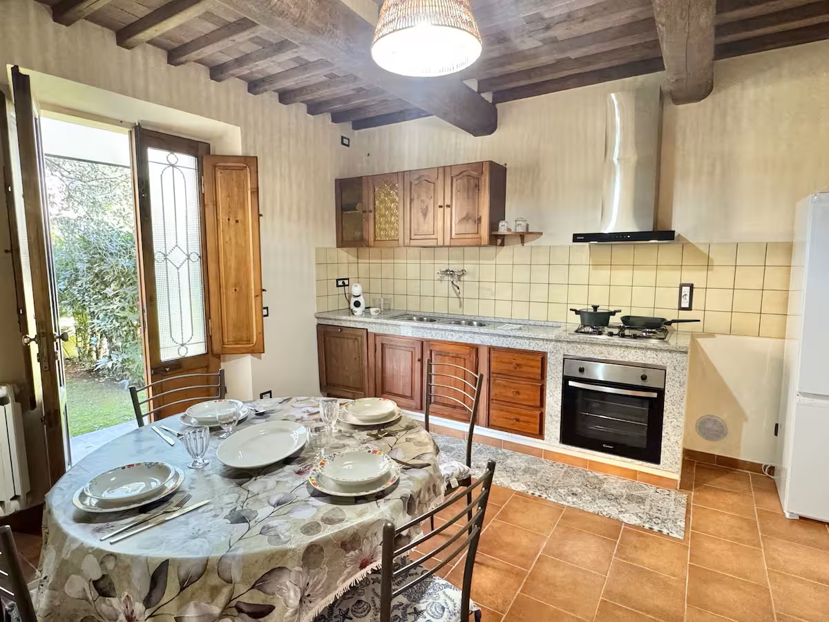 Arancio è un incantevole appartamento in stile rustico toscano con un gradevole giardino con patio arredato per le vostre cene all'aperto e due posti auto all'interno della proprieta'.