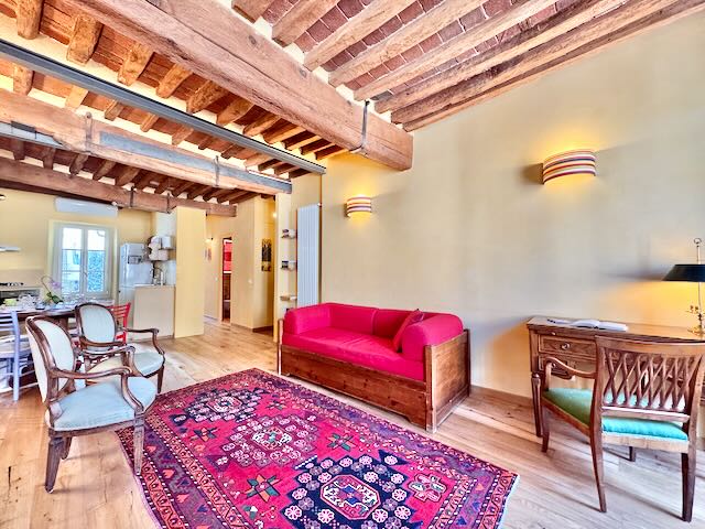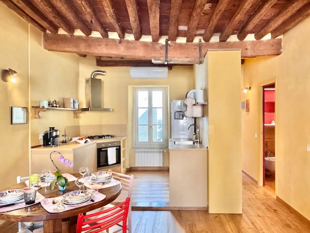 La Casina Gialla è un luminoso ed elegante appartamento posto al primo piano, senza ascensore, in una piccola piazzetta, nel centro storico di Lucca.
