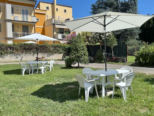 All'esterno c'è la possibilità di utilizzo di una porzione del giardino con arredamento da esterni dove poter trascorrere rilassanti momenti.
